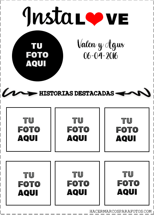 Próximos a la celebración del Día del Amor y la Amistad, compartimos 5 modelos de Marcos para editar tus fotos, el más buscado hoy en día es el cuadro insta Love. El mismo puede editarse online y descargarse sencillamente (totalmente gratis!). En simples pasos eliges el diseño que más te agrada, luego las fotos a colocar, en el caso del insta Love, serán 7 fotos las que pueden editarse, y luego de descargar el diseño en la pc podrás personalizar colocando la fecha y el nombre deseado. Crea los marcos para fotos de amor a continuación.